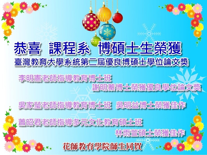恭賀!課程系博碩士生榮獲台灣教育大學系統第二屆優良博碩士學位論文獎