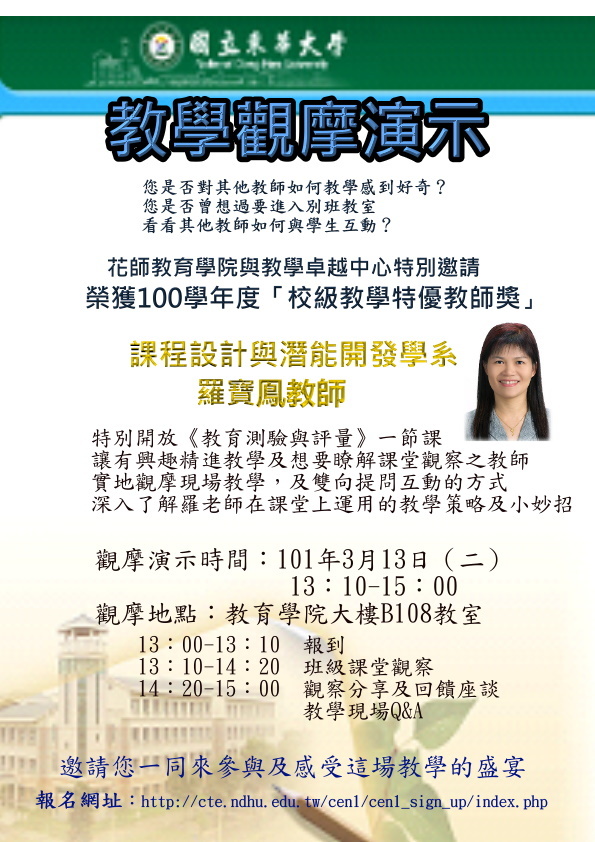 3/13校級教學特優教師羅寶鳳老師教學觀摩演示,敬邀參加
