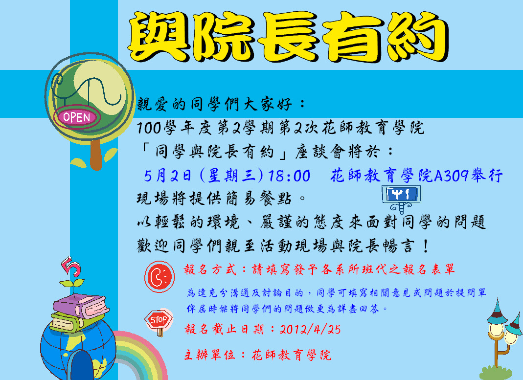 敬邀參加~5月2日與院長有約座談會