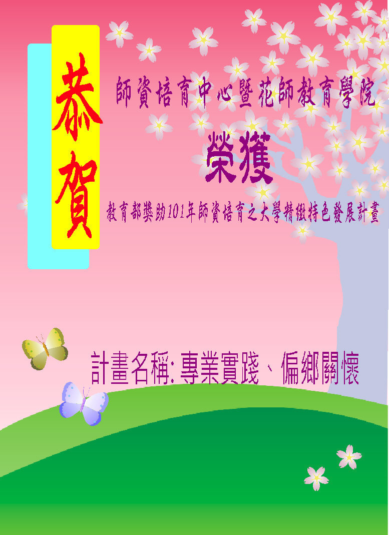 賀~師資培育中心暨花師教育學院榮獲教育部獎助101年師資培育之大學精緻特色發展計畫