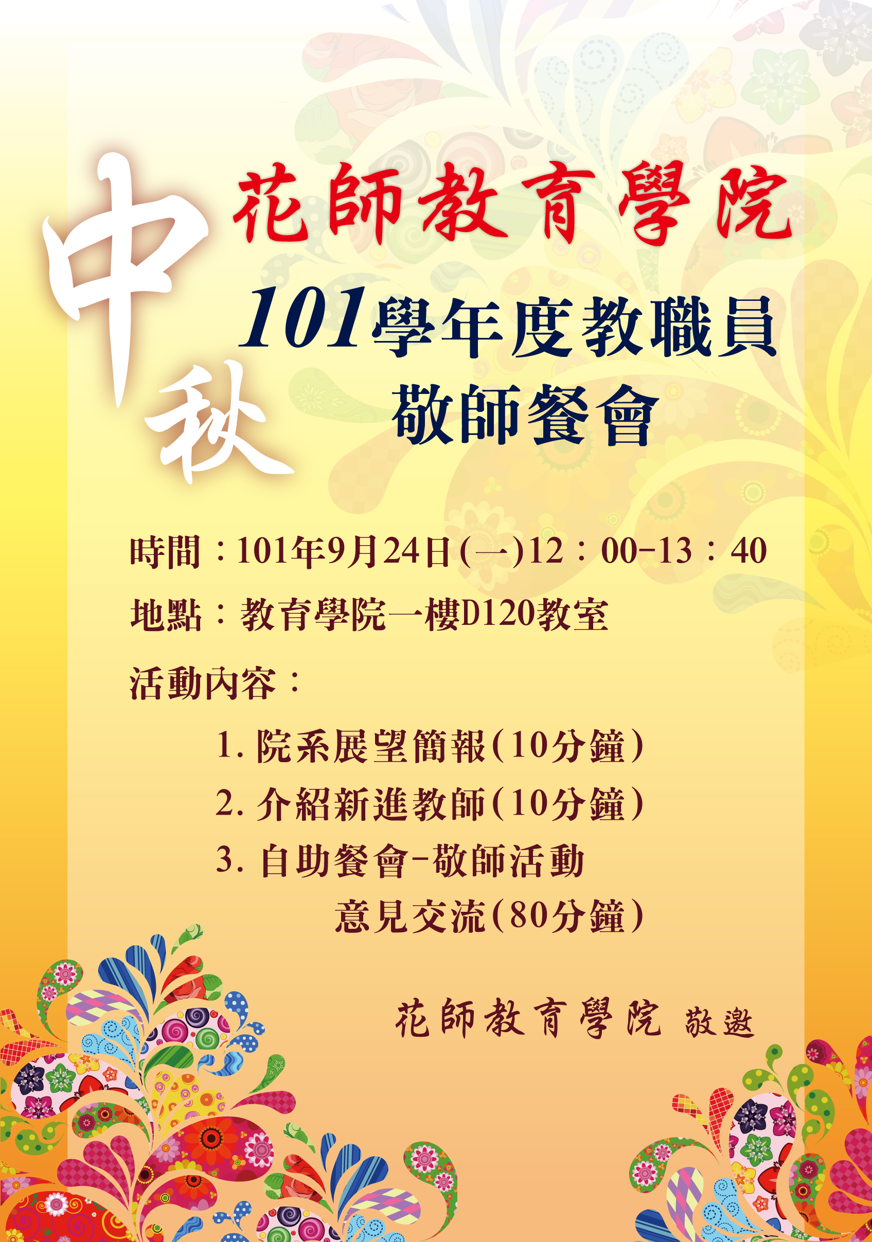 敬邀101/9/24(一)中午花師院全體教職員敬師中秋餐會
