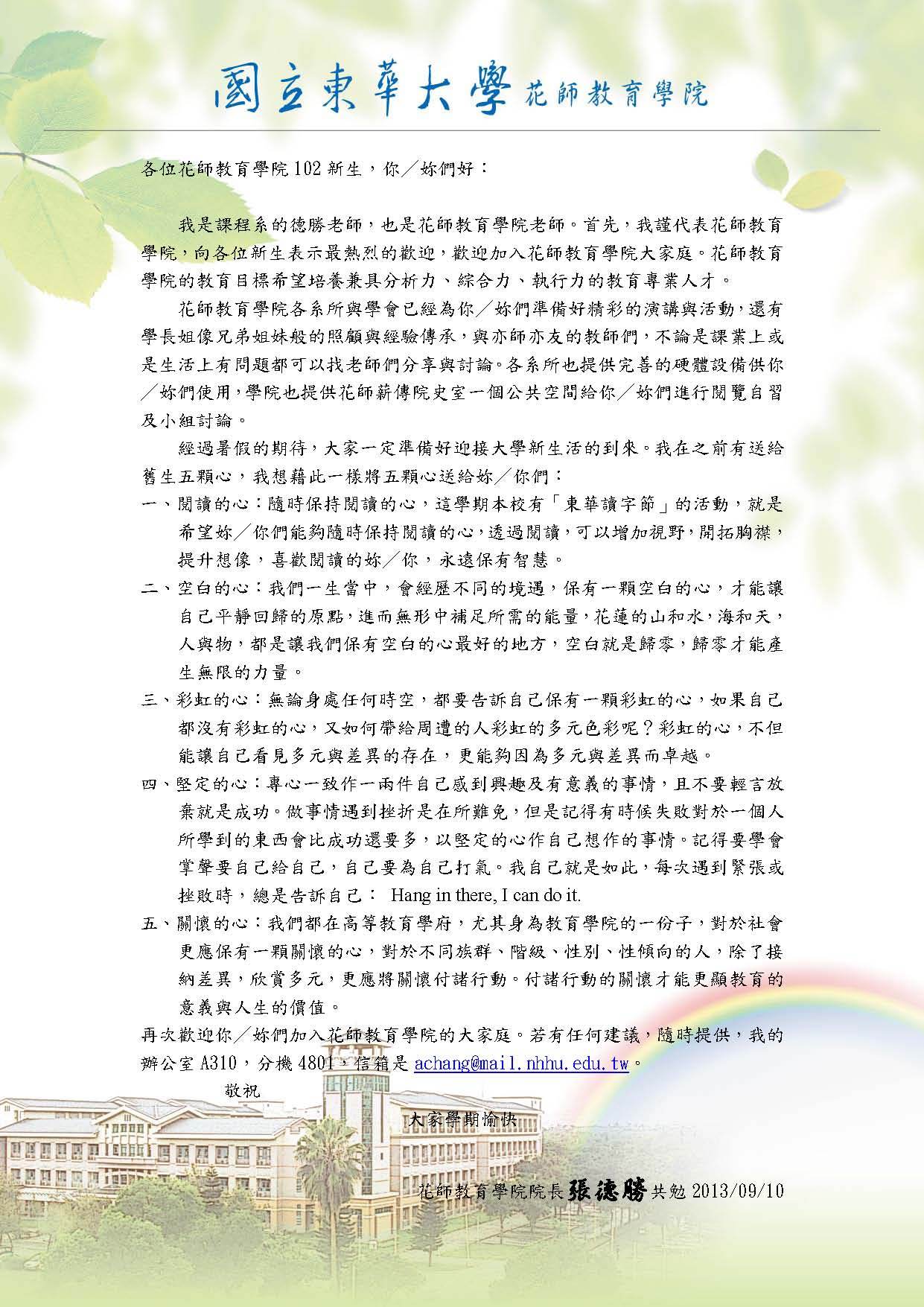 花師教育學院院長歡迎102新生