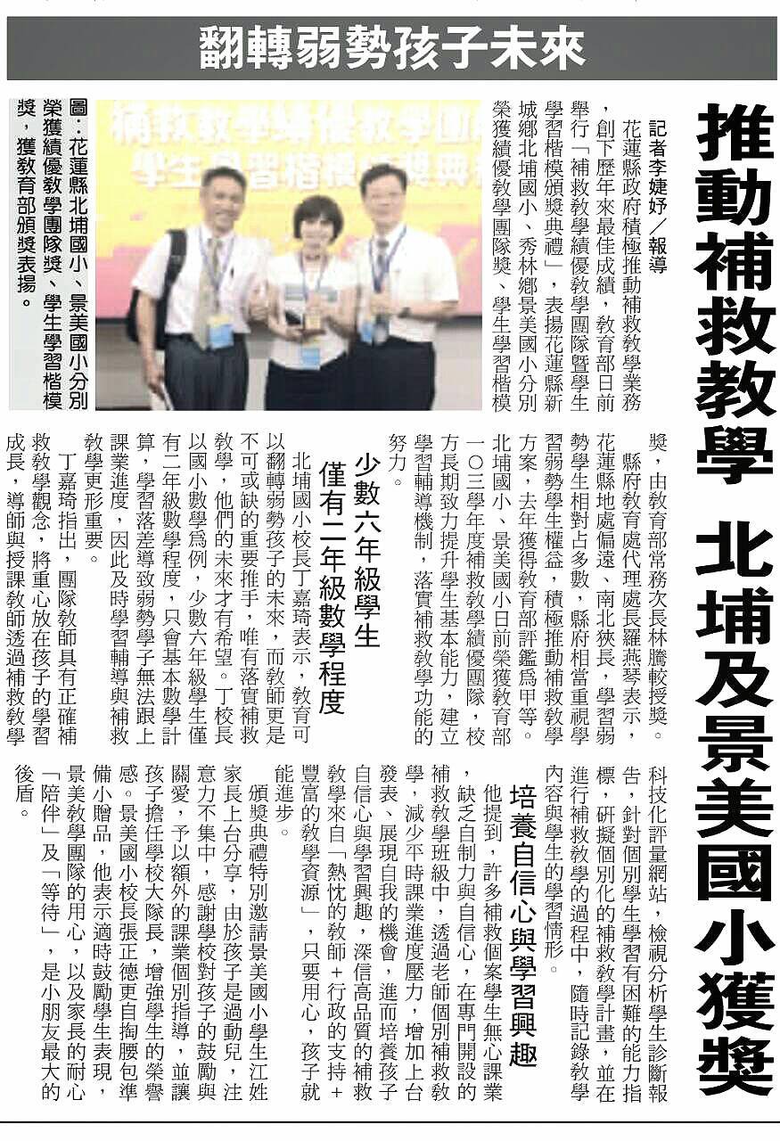 恭賀花師校友~傑出校長榮獲教育部<補救教學績優教學團隊暨學生學習楷模獎>